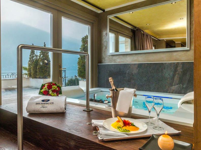 Swiss Diamond Hotel in Lugano is a five-star resort located on the shores of Lugano, a few kilometres from the city centre, a stone's throw from the enchanting village of Morcote.Just a few minutes away from the centre of Lugano and Milan Malpensa airport, in a unique setting between the lake and the surrounding mountains. The hotel has 87 rooms and suites, most with lake view, all elegantly furnished. The Lago Restaurant and the Panorama Restaurant, both with splendid lake view and able to satisfy every culinary need, are the ideal locations for a business event, a theme dinner, a private event. Bar with live music with the possibility to taste excellent cocktails and spend evenings in the company of friends in a refined environment. The Diamond SPA offers several possibilities of massages and beauty treatments; the wellness area includes outdoor and indoor swimming pool, jacuzzi, sauna, Turkish bath and fitness area.