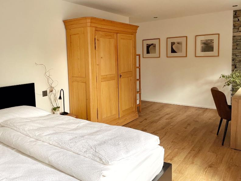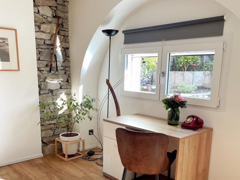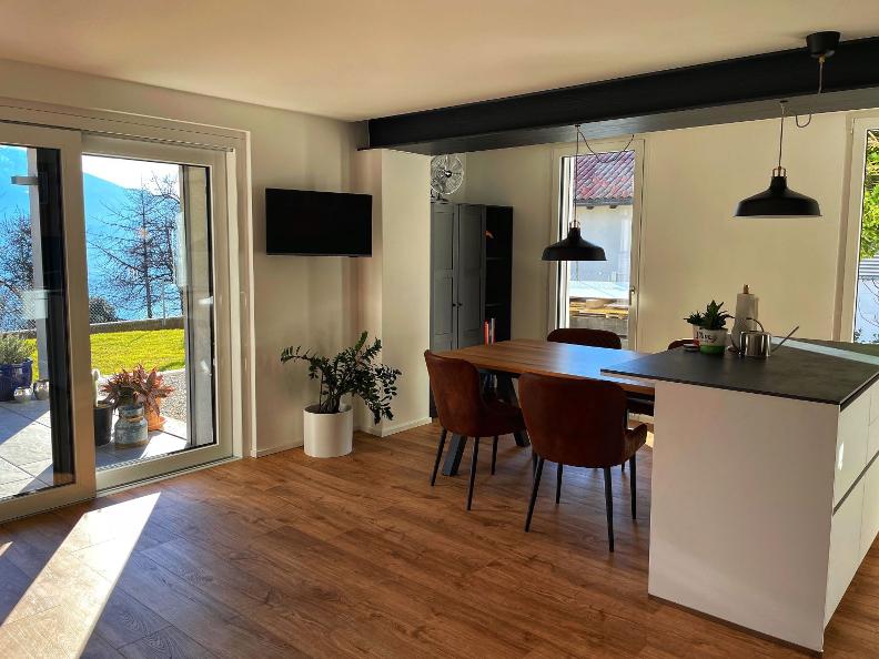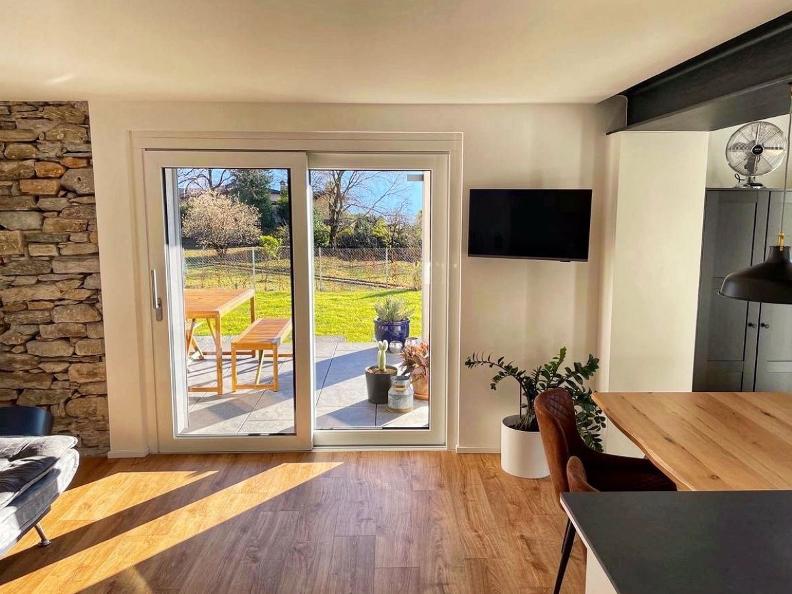 Located in a residential area on the hills, splendid and modern independent accommodation of 70 m2 recently renovated, terrace overlooking a garden with pergola, barbecue and view of the mountains and the lake.