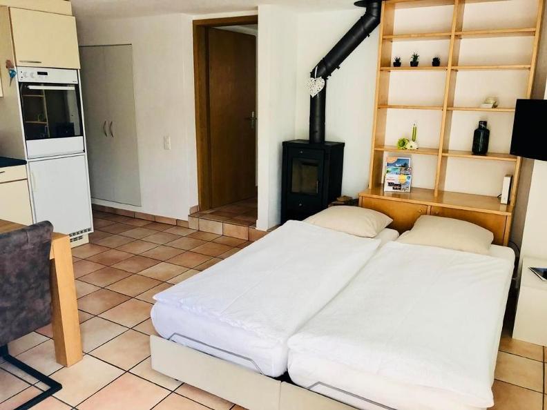 The apartment consists of a living room with sofa bed (2x 80x200cm) and open kitchen. TV and free wi-fi. 1 bedroom with double bed (160x200cm). Bathroom with shower and toilet. Outdoor area with table, gas grill and beautiful panoramic view of Lake Maggiore.