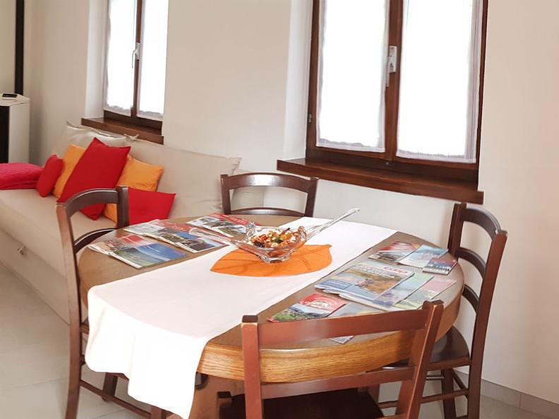 Typical Ticinese stone house, uni-familiar surrounded by greenery. The house has been completely renovated, adapting it to residential standards. It consists of a private parking adjacent to the house, an independent entrance which leads to the living room, bright and welcoming with pellet stove (it is also equipped with electric heating) and open-plan kitchen. To access the upper floor you have a stairlift suitable for users with motor problems. Upstairs, attic, we find: a bathroom with thermostatic shower, a room with a bunk bed, a double bedroom, from both rooms you can access the balcony. Pergola with table and benches in local granite outside. The house offers free wifi and a safe. Kitchen (fully equipped). There is also the possibility of using the washing machine. The house is located in Claro (Bellinzona district) accessible by car (private parking space) and public transport (the bus stop is 100 m away).