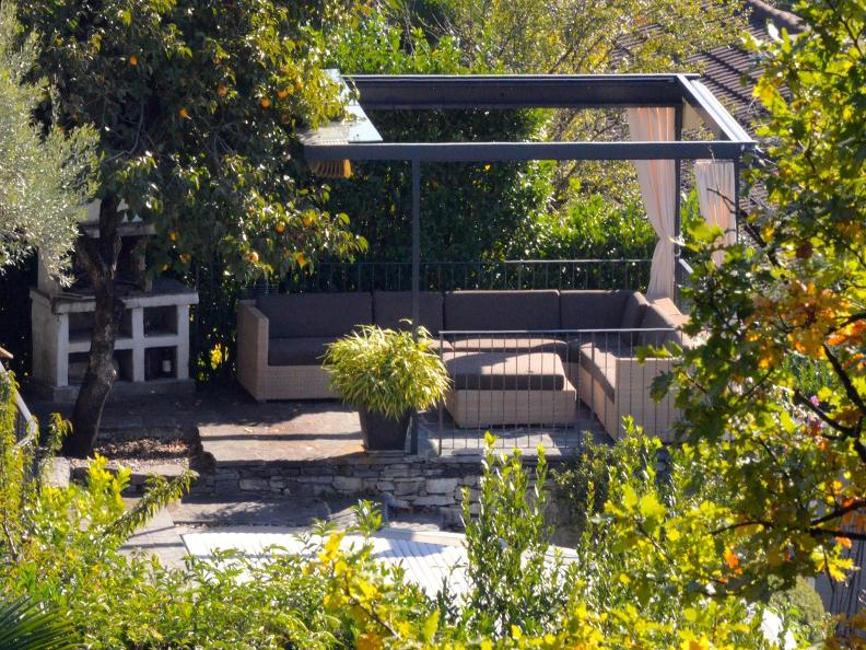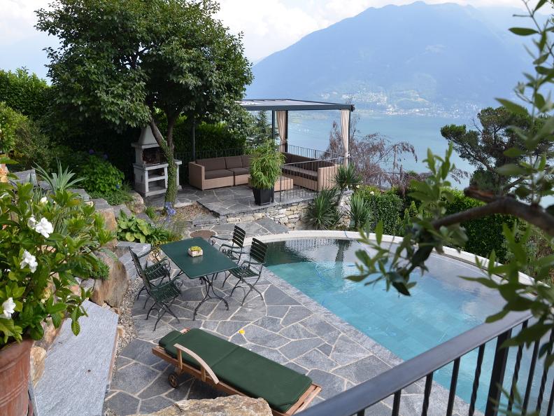 The house has an extra large outdoor seating area.