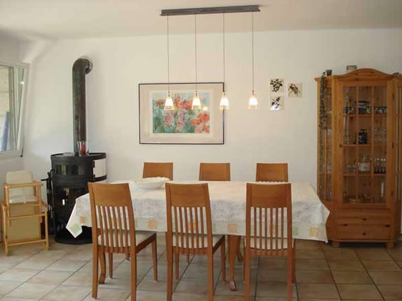 Holiday house 4*, with 6 beds Two stored house (approx. 100m2). Ground floor: wide living room with upholstery, dining table, baby chair, Swedish oven, heating, TV, radio, CD player, handy; open integrated electric, fully furnished kitchen with Nespresso coffee machine, refrigerator with freezer compartment, dish washer. Toilet and sink. In front of the dining room there is a terrace with marvelous view on the lake and mountains. Garden furniture, long chairs, gas barbecue. On the 1st floor: 3 double rooms (4 beds 90/200 cm, 1 double bed 160/200 cm), 1 extra bed and 1 baby bed. Two separated showers with toilet, washing machine. Balcony with marvelous view