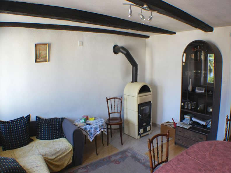 On the second floor there is a kitchen, parlour with sofa, dining table and Swedish stove and a bathroom.