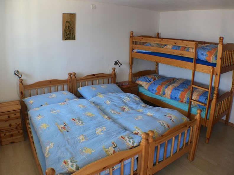 On the top floor there is a master bedroom with a double bed, a ‘children's room’ with 4 beds and a balcony with a view, as well as a WC.