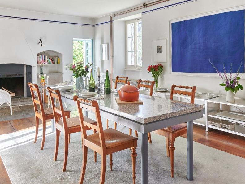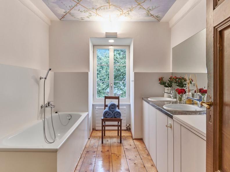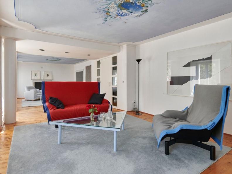 The residence was acquired in 1981 by a well-known Swiss architect and gallery owner and was carefully rebuilt and renovated. The goal of the renovation was to preserve the original character of the house as much as possible. Contemporary artworks by the owners hang on the walls, tastefully complementing the original furnishing concept from the 1980s.