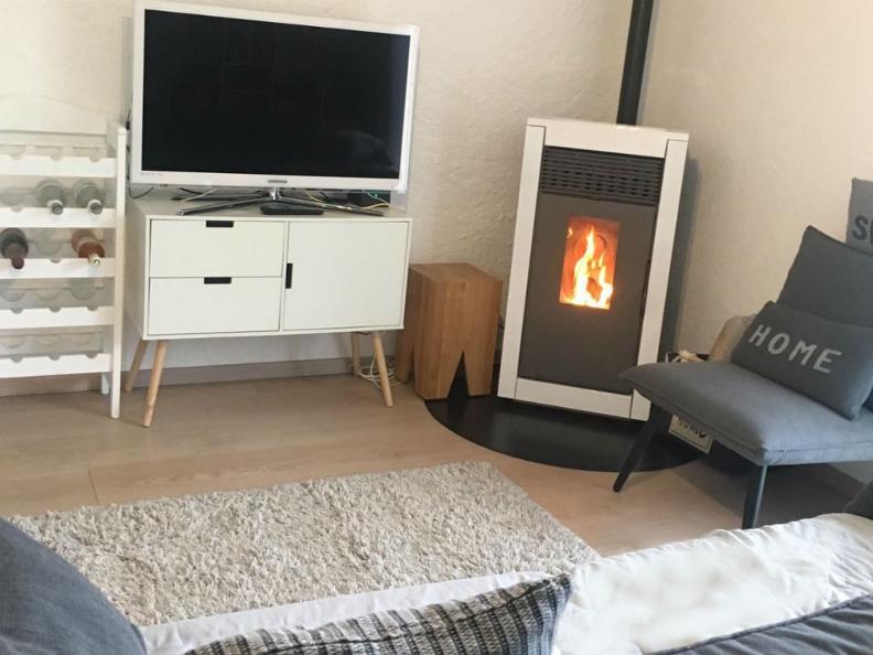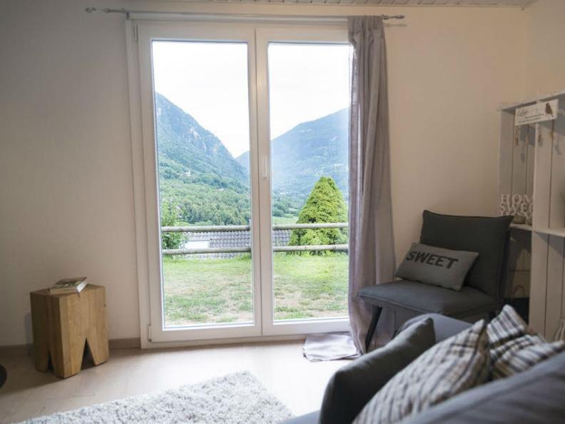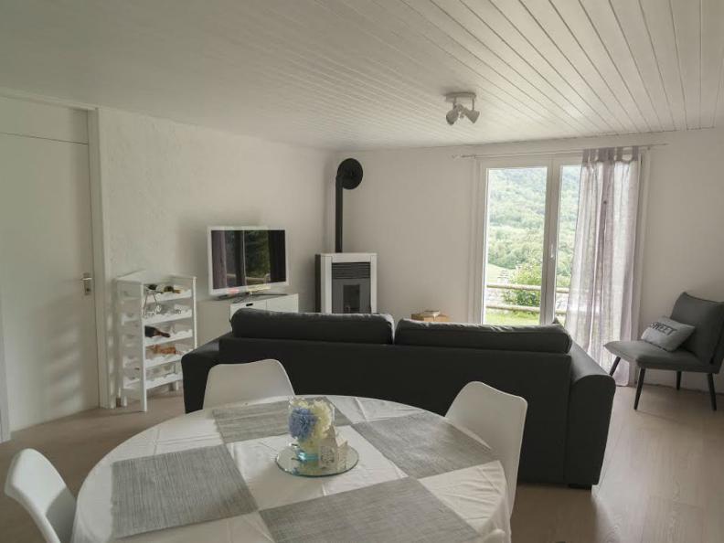 Recently renovated studio (2018) located in Ponto Valentino, 10 km from Biasca, on the ground floor, with a bedroom (bed of 1.80 m) and separate an openspace with living room (sofa bed for one person) and kitchen equipped with dishwasher, induction hob, coffee maker. In the living room there is a new pellet stove that creates a warmer and more welcoming environment even in the cold season.
