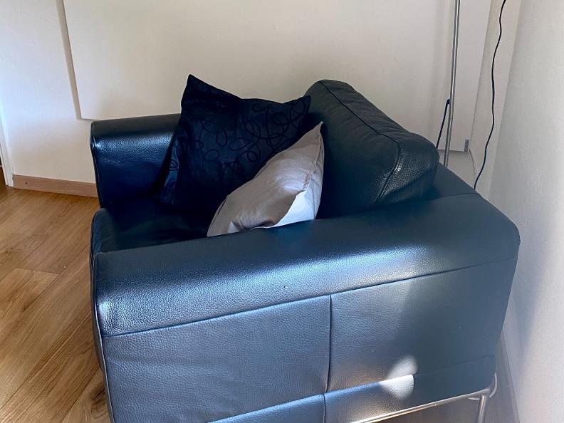 Living/dining room: sofa, armchair, dining table for 4-6 people, wardrobe, shelves, electric heating. Exit to the terrace.