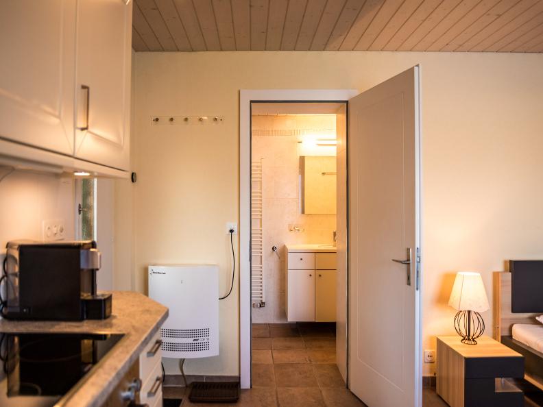 Comfortable, newly furnished 1½-room apartment of about 30 m2 . It includes: a double bed with two mattresses, spacious wardrobe, dining table with 3 chairs, fauteuil, modern fitted kitchen with oven, stove and dishwasher, shower / WC, TV, radio, free internet connection. Garden seating area of 20m2, shared use of swimming pool, shared use of washing machine and tumble dryer, 1 uncovered parking space.