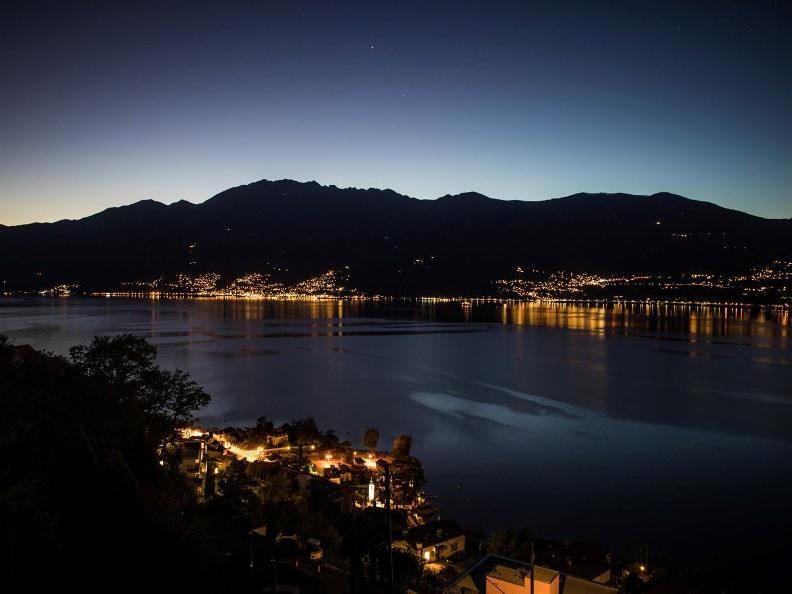 Vacation house with two floors, on the 1st floor a 4½-room apartment for 7 people, on the first floor a studio for 2 people. The house is situated 150m above the lake on the southeastern shore of Lake Maggiore in the hill zone of Gambarogno. Grandiose panoramic view of Ascona, Locarno, the lake and the mountains. It is surrounded by a large garden of 2000m2 with a swimming pool of 24m2. 4 ½-room apartment and studio each have a separate garden sitting area with barbecue. The property is in a quiet location, bordered on one side by a stream, on the other by the forest. A longer staircase leads from the road to the house. There are three parking spaces available. The cellar is equipped with washing machine and dryer. Both units can be rented together.