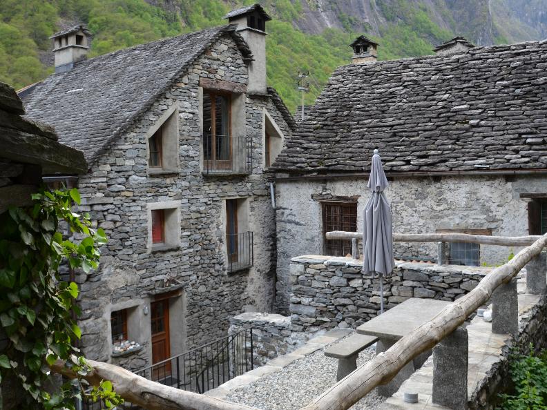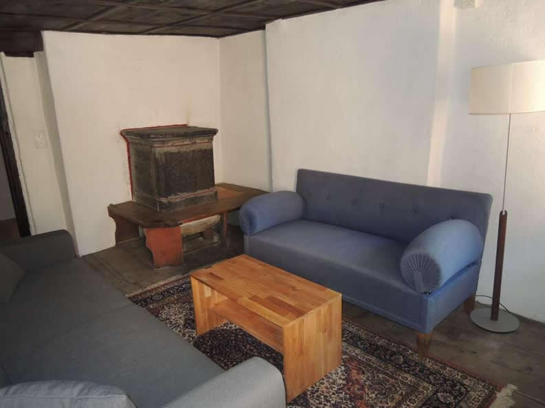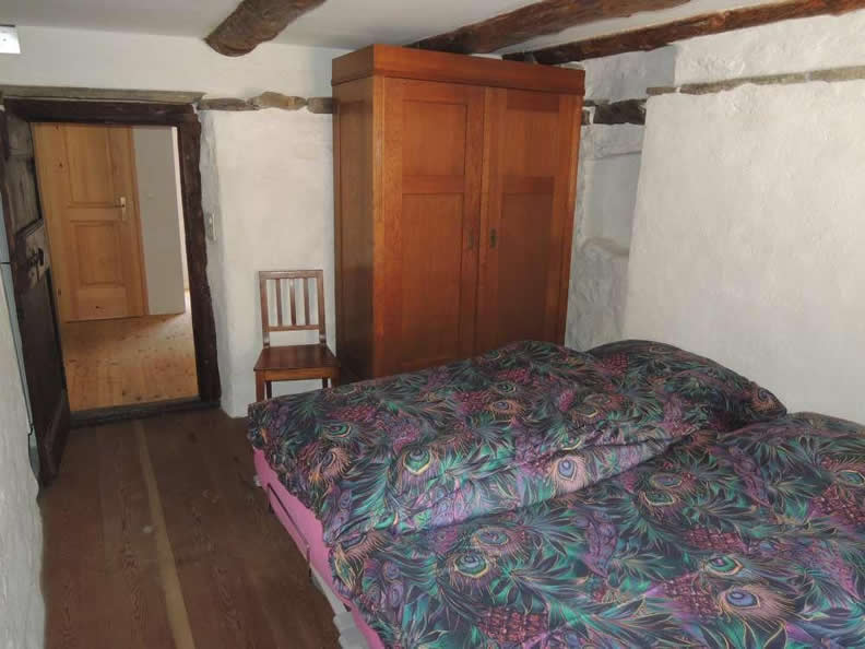 The family-friendly apartment for 2-10 people is on a quiet, rarely traveled street in the village center. On the ground floor of the gently and with natural materials renovated stone house is a large wardrobe. On the 1st floor there is a new kitchen (2014) with dishwasher and induction cooktop. The big fireplace and wood stove (= heating) provides cozy romance. Also on the first floor are the little living room with the antique soapstone stove and a toilet. At the second floor there are two twin bedrooms, a shower and a separate toilet. At the top under the stone roof supported by fir logs from the region, offers the largest room place for six people. For the very young guests a cot is available. In the courtyard stands a granite table at the sole disposal of the guests.