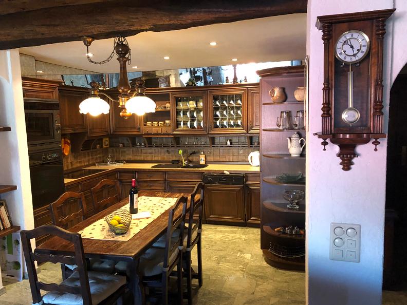 The open kitchen is equipped with all utilities: stove, fan, refrigerator, dishwasher, coffee-machine, microwave, oven and more.