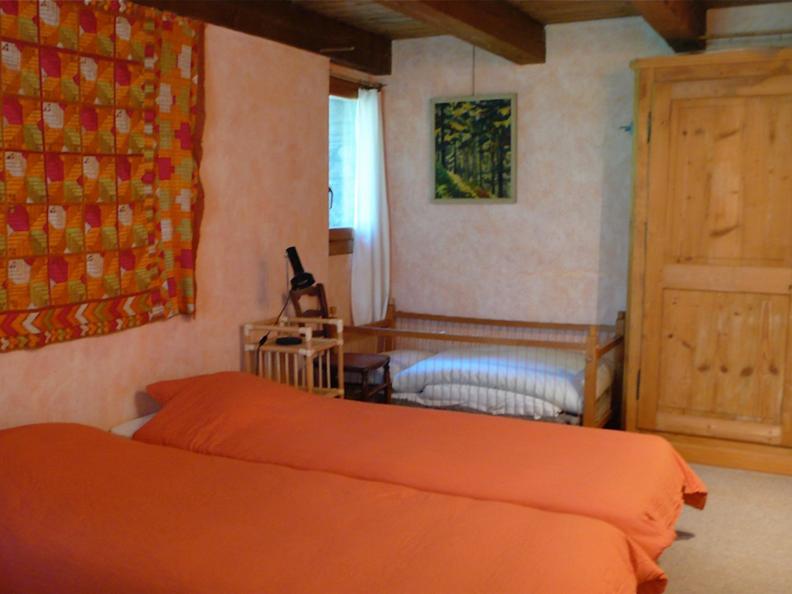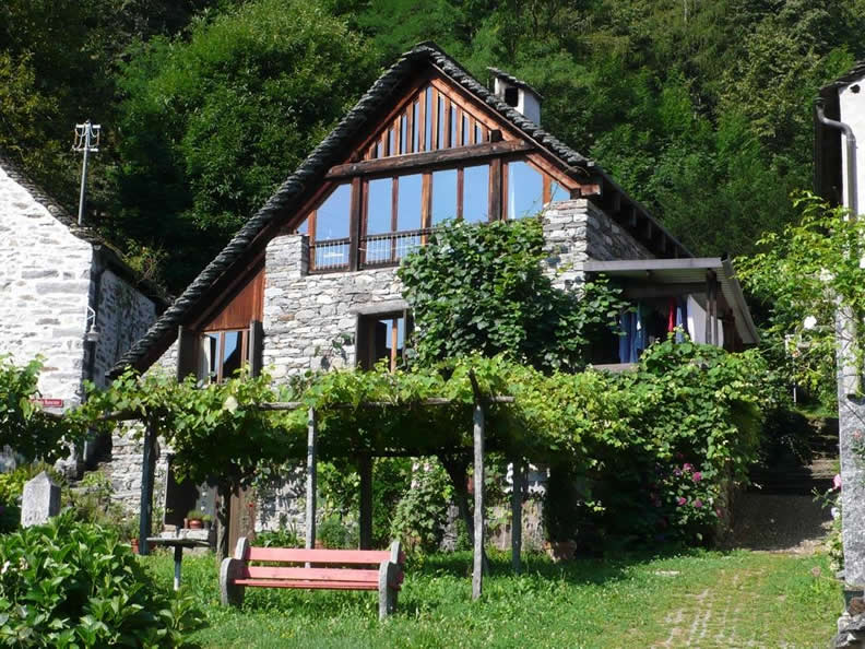The living area of Casa Studer consists of of 2 floors. The first floor has three bedrooms, a bathroom (with washing machine), and a separate toilet. The bedrooms each have 2 to 4 beds, and one bedroom also has a child's crib.On the second floor is a living room with fireplace and picture window overlooking the village of Aurigeno and the Maggia valley, and also a very comfortable and practical kitchen/dining area, opening on to a balcony facing the mountain side of the property. The Casa Studer is located next to a forest and is a perfect starting point for many outdoor activities. Mountain trails lead down into the Maggia valley, or alternatively over the mountain into the next valley, the Onsernone valley. Beaches along the Maggia river are within easy walking distance. A waterfall about 500 meters from the house provides swimming and water play in summer. On rainy days, the fireplace in the living room, together with a very efficient infrared heating system, create a warm and cozy indoor environment for work and play. The Coop and Denner supermarkets, a bakery and a gas station in Maggia are five minutes by car. There are little stores also in the next village of Moghegno. You will find plenty of restaurants all over the valley. Movie theaters in Locarno and Ascona and the Teatro Dimitri in Versico are about 12 kilometers from the house. While conveniences of civilization are easily accessed, the peaceful village life of Aurigeno restores the soul stressed by day to day modern life. A telephone, broadband internet and satellite radio reception provide contact with the outside world. A CD/cassette player is available too. Accessible only by foot (50m).