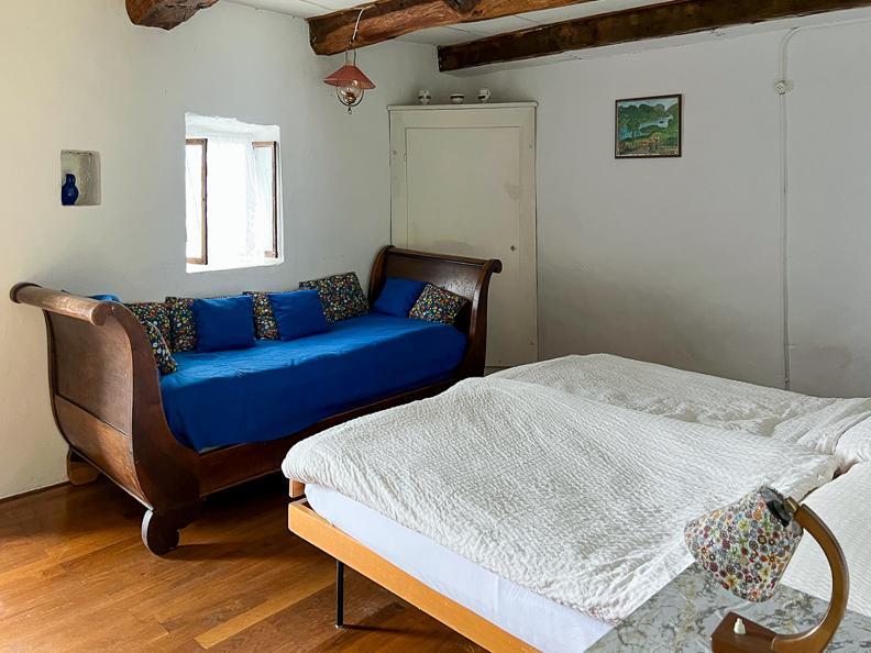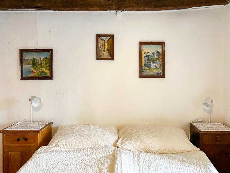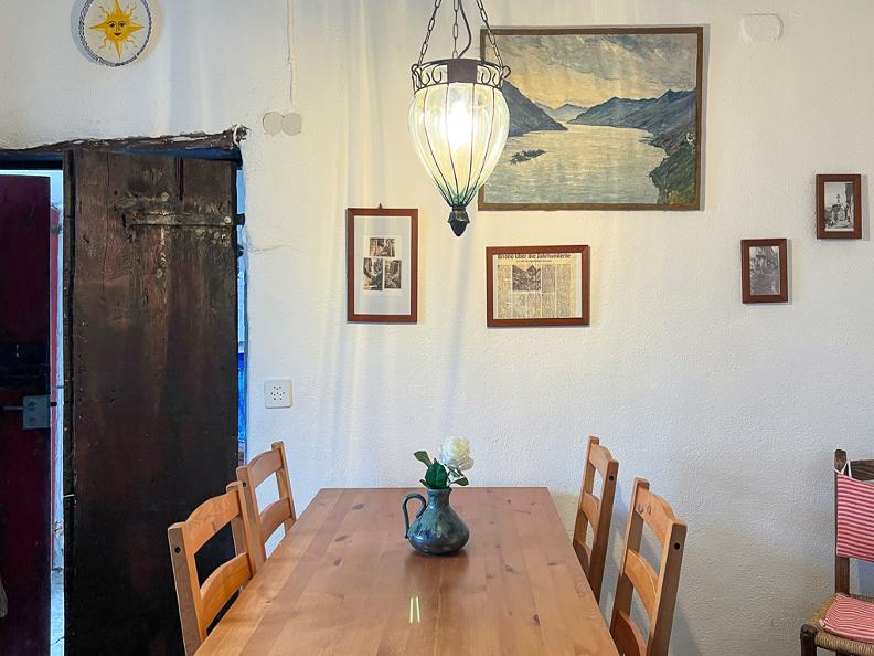When coming to the Casa Vecchia, one goes on a small time travel to the Ticino of 400 years. The old walls with the typical winding room layout are still true to the original. Also the charming kitchen utensils, mirrors, lamps, curtains and decorations let you dream of past times. Quietly and idyllically situated on the southern slope, with a magnificent view over Lake Maggiore, unforgettable hours can be spent here far away from tourist standards. The best months to stay at Casa Vecchia are from March to October, because there is no heating system. On cool evenings our guests enjoy the warmth in front of the large fireplace on the first floor. Only the bathroom on the second floor is heated electrically.