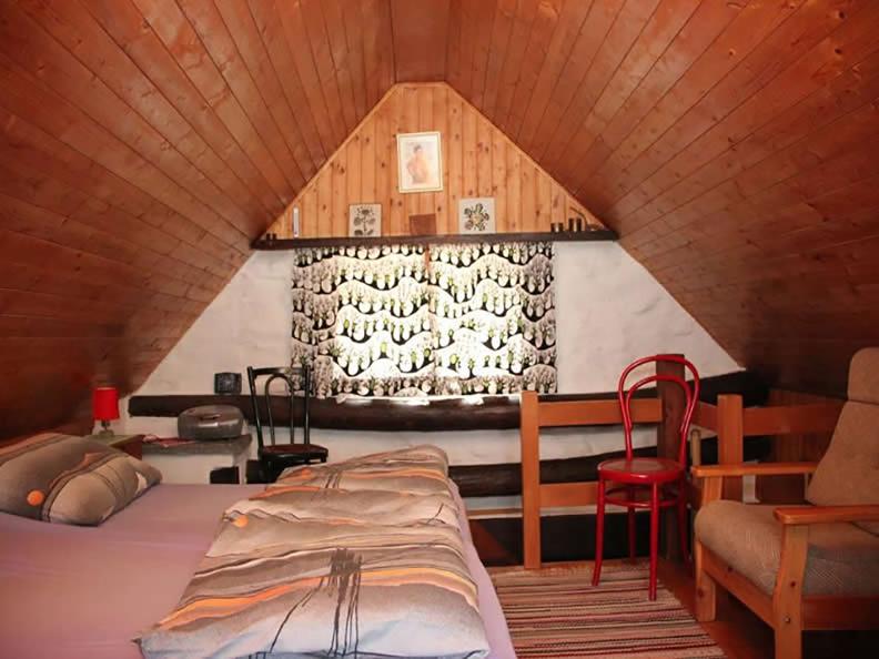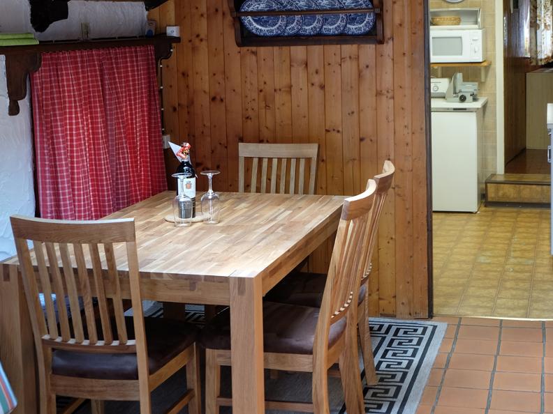 The house is divided into a dining room with a Swedish stove, a well-equipped kitchen, a bathroom, a living room and a bedroom.