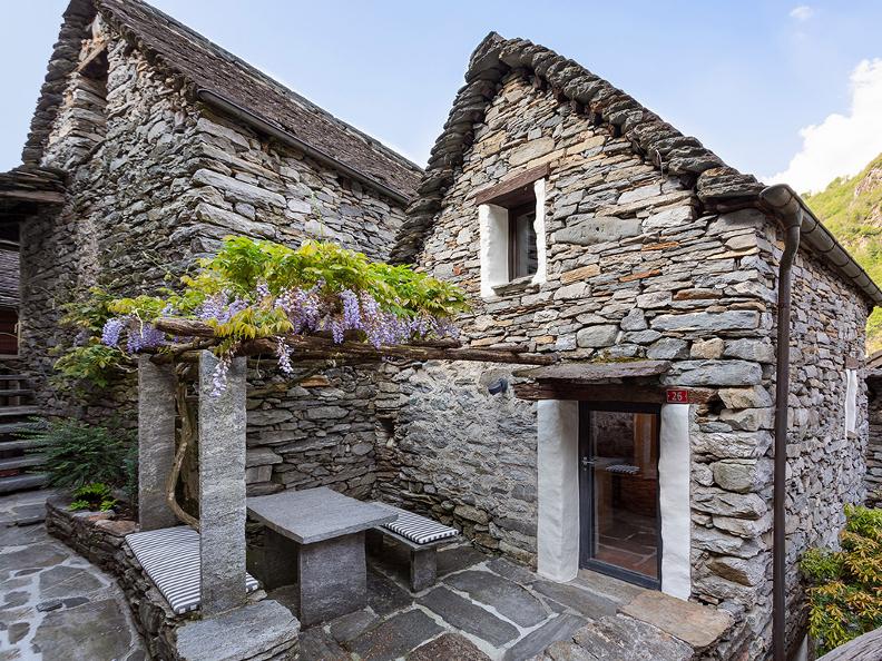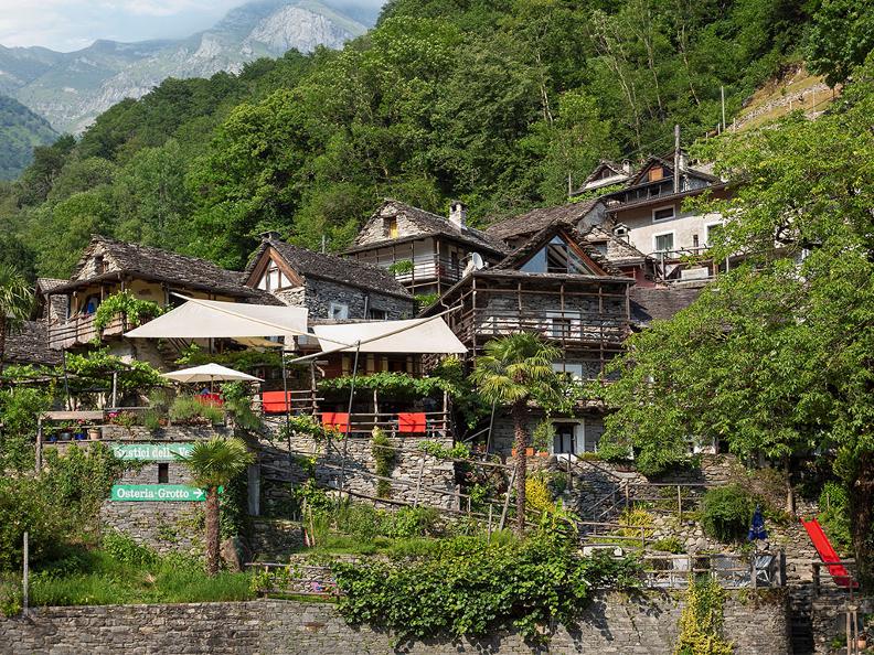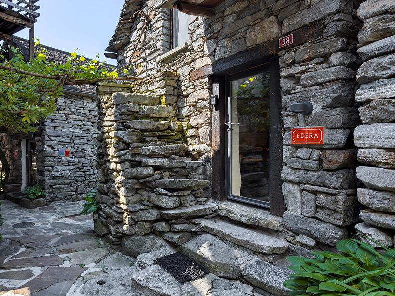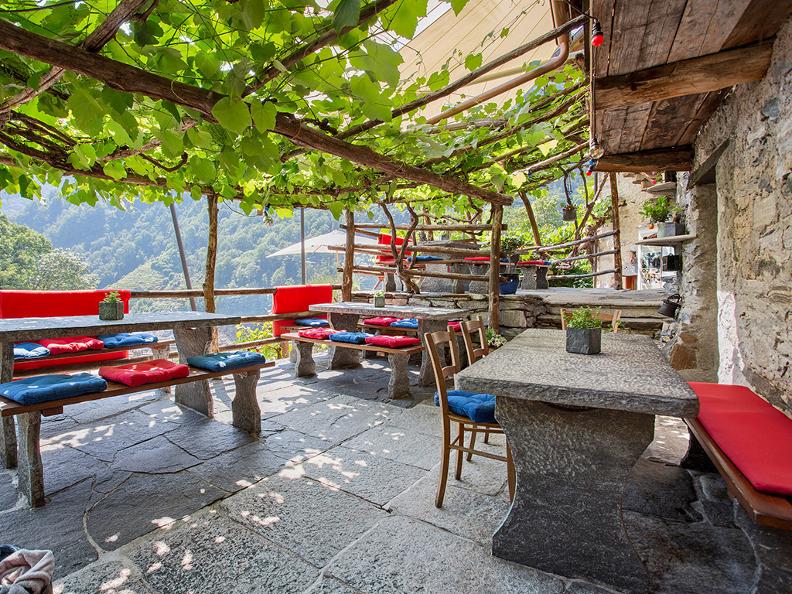 village consist of stone houses of different sizes, in which are 18 individually furnished vacation apartments; the charm of yesterday combined with the comforts of today. Directly adjacent to the vacation village is the Osteria Paradiso, a typical Ticino grotto with lots of charm and all kinds of Ticino specialties. Enjoy homemade Ticino specialties in an atmospheric ambience under the pergola covered with grapes.