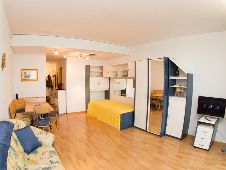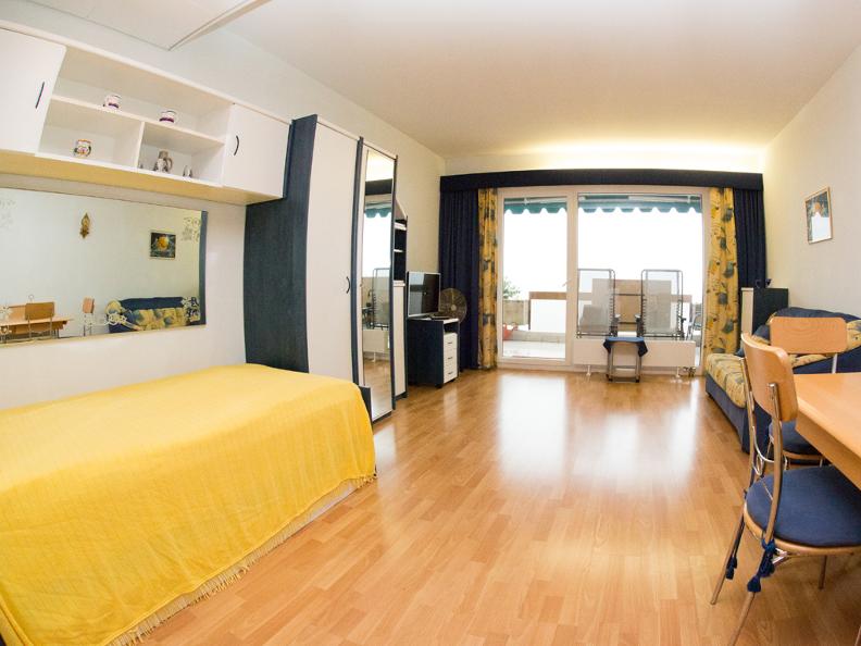 The studio is located in a quiet area with a unique view of Lake Maggiore. You sleep and live in the same room, the kitchen is completely furnished. Toilet/shower, TV, radio and W-Lan. Enjoy the wonderful view on the 10m2 balcony, or sunbathe on the large roof terrace. In the Residenza there is an indoor swimming pool, sauna, fitness room, washing machine and tumble dryer and the apartment has a portable fan.