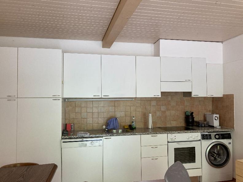 Living area with dishwasher and Delizio coffee machine, WIFI and washing machine. Television coming soon.
