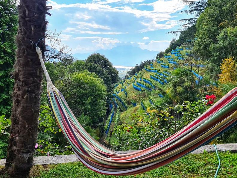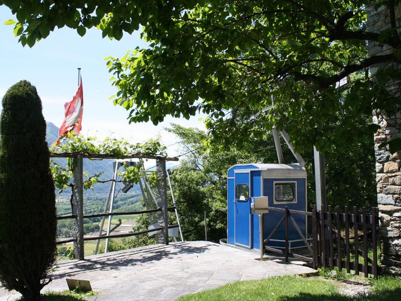 From the valley station with our private cable car you can reach our Paradise in less than 4 minutes. Call us on arrival, we will pick you up at the station. Thanks to the micro-climate here, palm trees, kiwis, lemons and many other plants and fruits grow here that would never grow in the north. We leased our vineyards to Cantine Stucky Hügin. One of the best red wines from the region comes from our grapes.“Tracce di Sassi”