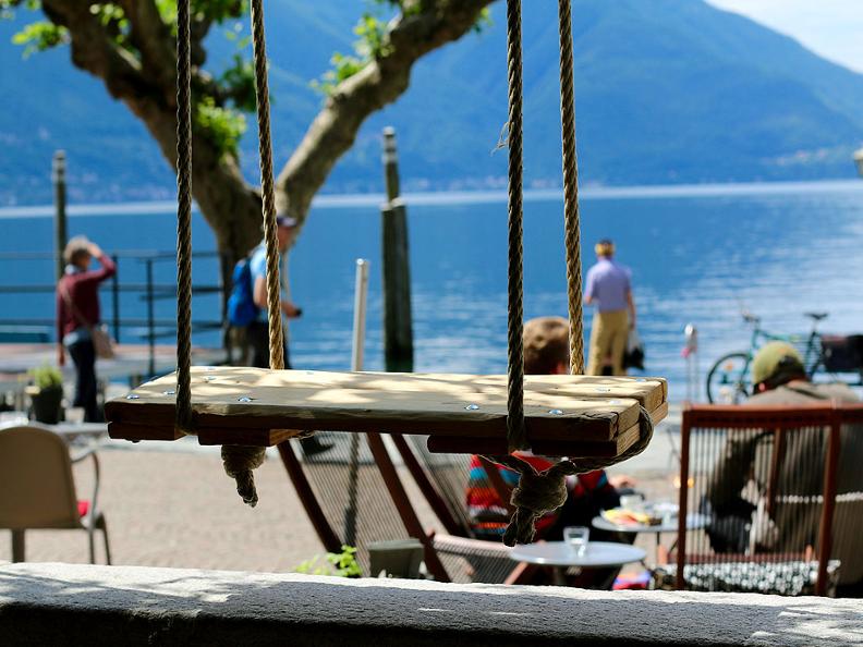 Facing the magnificent view of Ascona’s lakefront, Bar Battello with its shabby chic ambiance is a great place to relax over a morning coffee, croissants and cakes, or chill out with a glass of wine and cocktails
