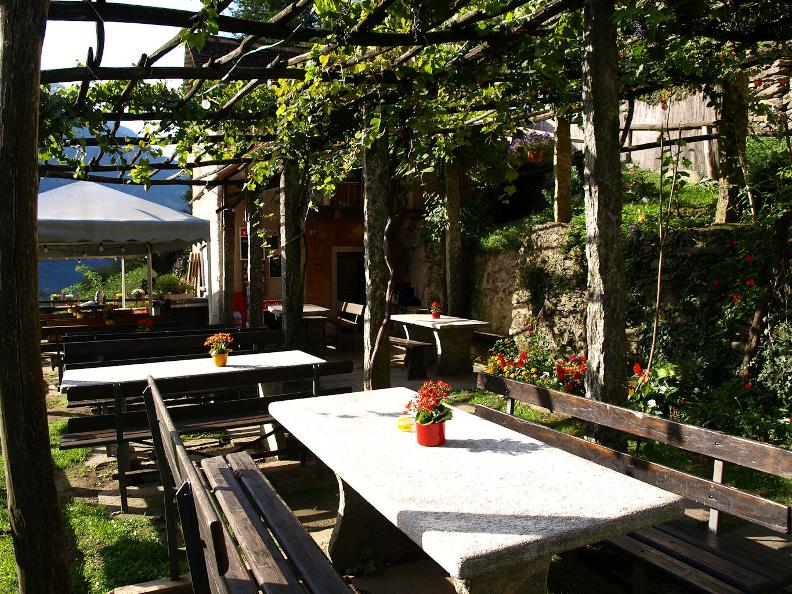 The grotto, surrounded by plants and flowers, has a large terrace with a beautiful view of Malvaglia and its valleys, and a small wine cellar where fresh meats, cheeses, vegetables, wines and soft drinks are stocked. Upstairs, a cozy dining room with fireplace, used in spring and autumn, when the days get shorter and the temperature outside does not allow the use of the terrace.