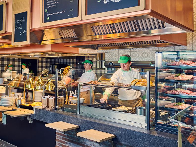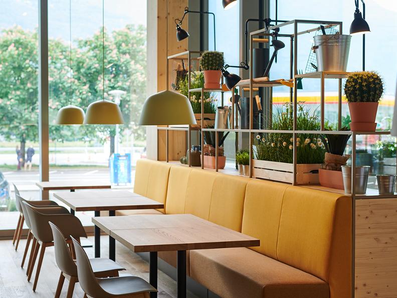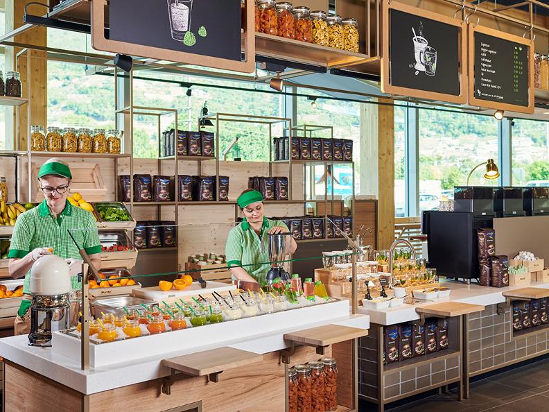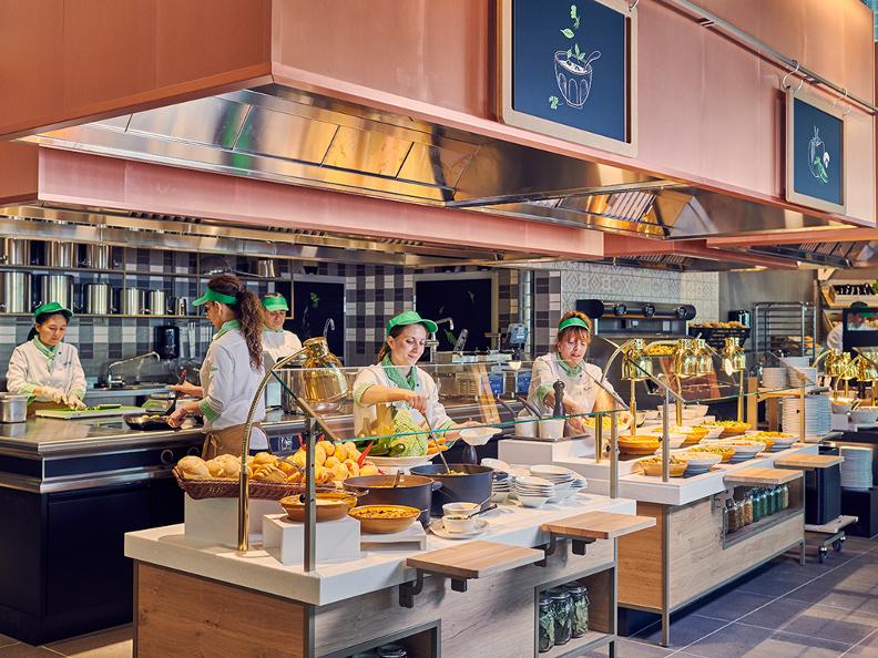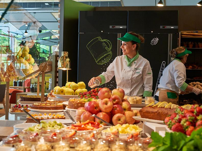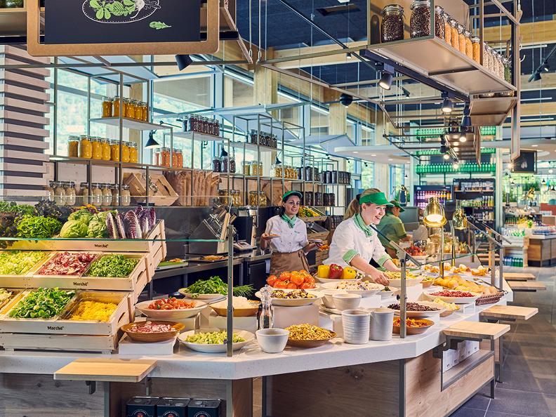 Here, cooking is a passion and guests can watch it live. As is customary at a traditional marketplace, you select your food from a colorful variety at various booths. The popular marketplace concept has however been reinterpreted: Marché aims to delight its valued customers with updated, contemporary offerings, new and natural materials, modern equipment, and timelessly elegant design. The spacious and bright market area is reminiscent of a market hall and offers space for inviting presentations and innovative services.
