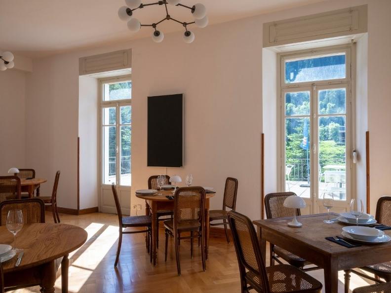 Its large park with a cold water fountain and salt water hot pot and its terrace with a view will welcome you to taste some of the regional, 'organic' and fresh dishes of the day inspired by our chef: 'homemade' gnocchi and pasta, beef ‘brasato’, osso bucco or tiramisù and blueberry cake. Open from June to October (24.10.21), every day from Tuesday evening to Sunday afternoon.