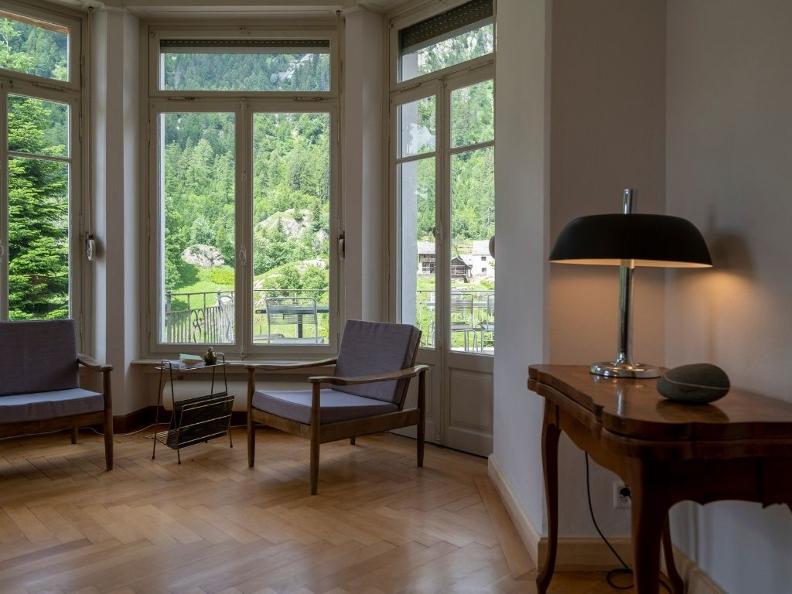 Situated on a hill facing the picturesque village of Fusio, the last inhabited place before the Sambuco dam and the beauty of the Naret lakes, the Hotel Villa Pineta (1908) has just been renovated with taste and passion: a clever mix of history and modernity.