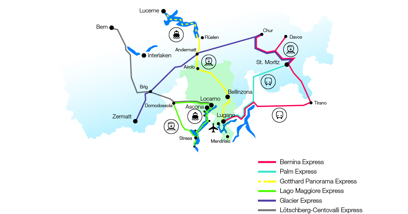 Fascinating options are available to reach Ticino by public transportation, all going through dazzling panoramas. Explore Switzerland by train, bus and boat!