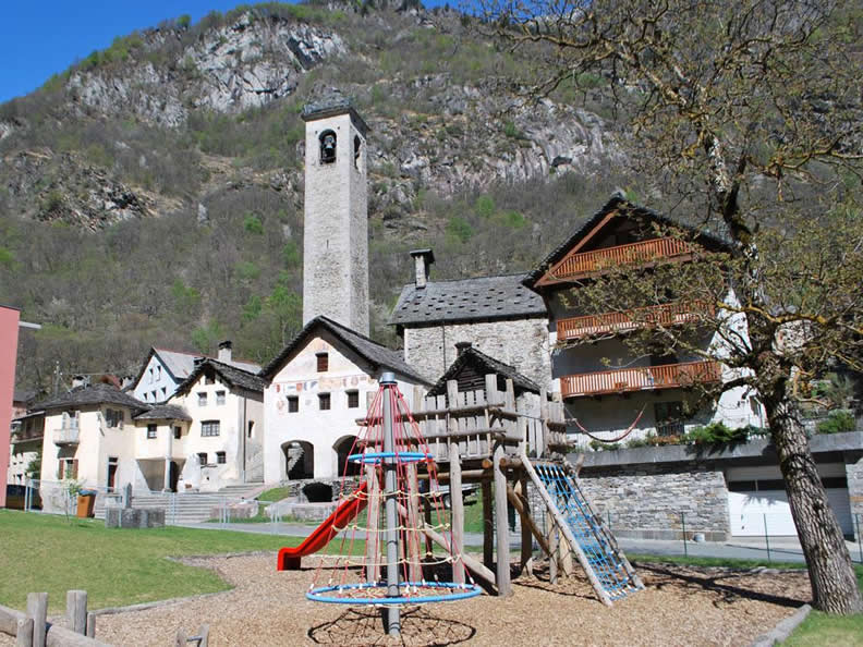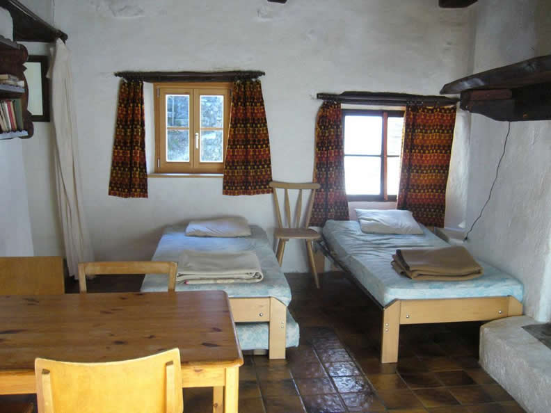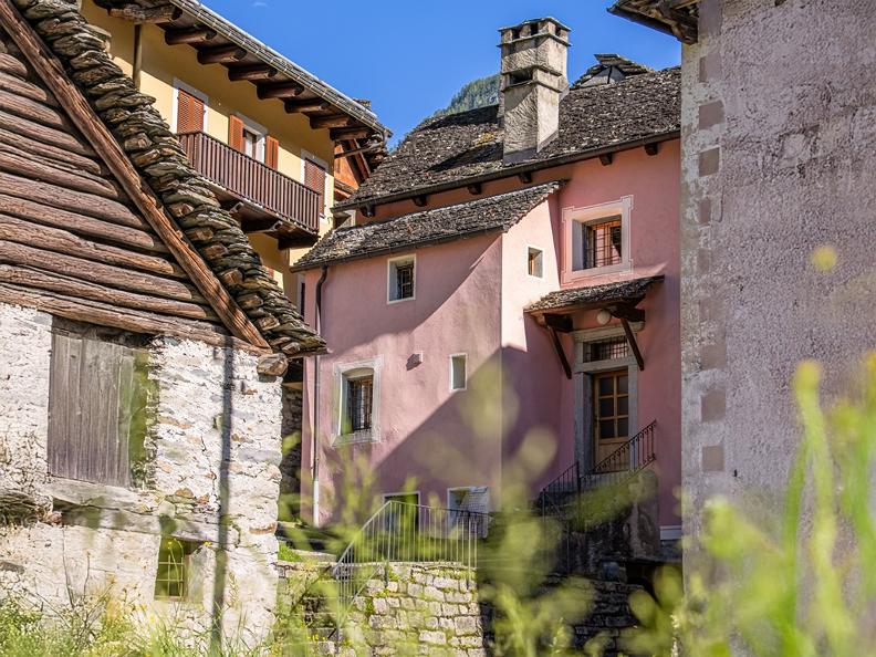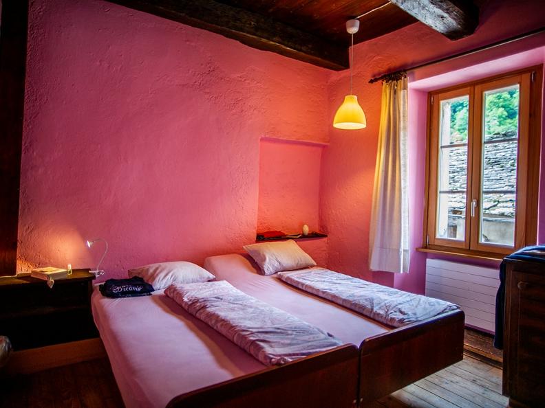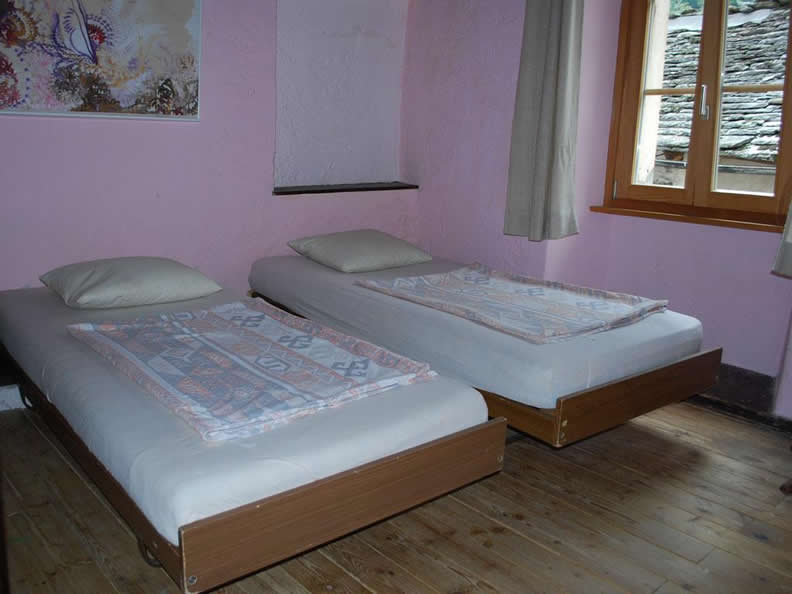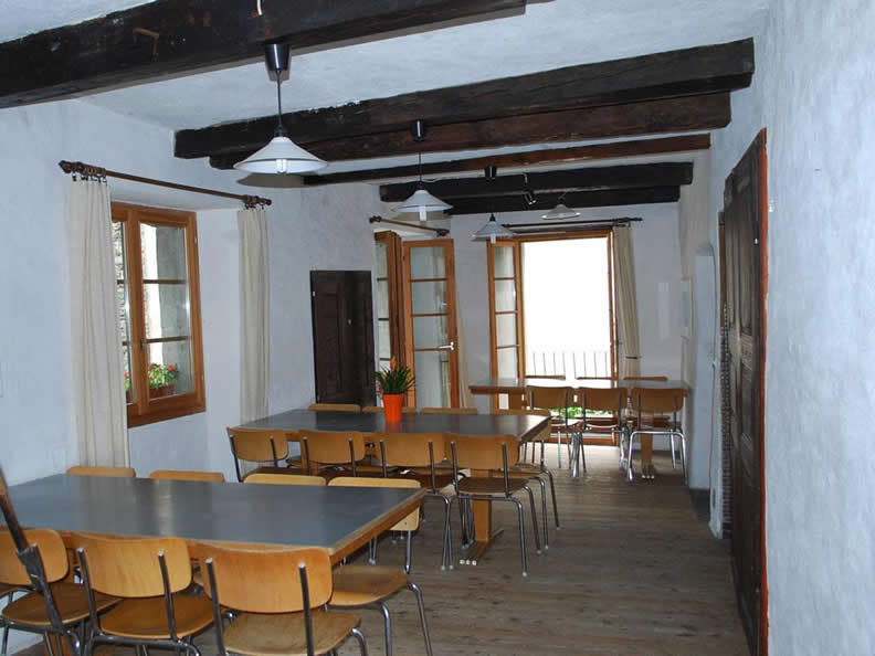 The over 300-year-old Ticino house Casa Antica, once the seat of the bailiffs, is located in the historic village center of Sornico (municipality of Lavizzara/Maggia Valley) in Ticino (Switzerland). This large house has a typical Ticino atmosphere: winding staircases, small and large rooms, an old fireplace, a soapstone stove and a large pizza oven, terrace, benches and tables. The surroundings are also typical of Ticino: sunbathing and splashing around in the nearby Maggia pools; meadows and rustic chestnut forests invite you to hike and explore; soapstone hunting and working under expert guidance; a variety of excursions. Shopping directly across in the village store La Botega where also can be placed orders. Accessible by public transport (SBB, FART, PostBus), the PostBus stop is 3 minutes from the house. The house is open all year round and can be rented in two versions: 1. whole house for 19 people from 3 nights, 2. house without attic for 6-12 people from 5 nights.