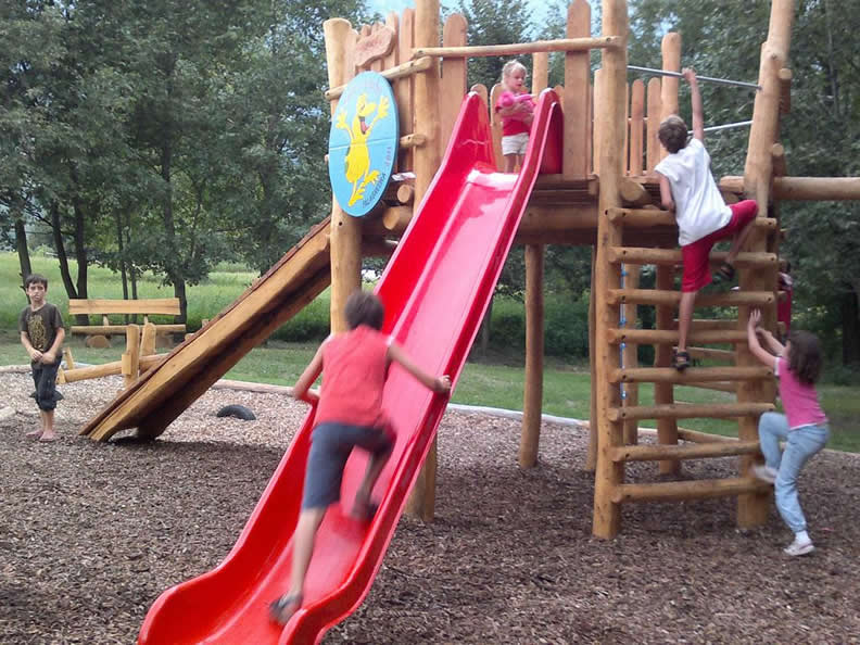 Green areas, a playground, a volleyball and soccer field, a barbecue area and outdoor ping-pong not far away are available to guests.