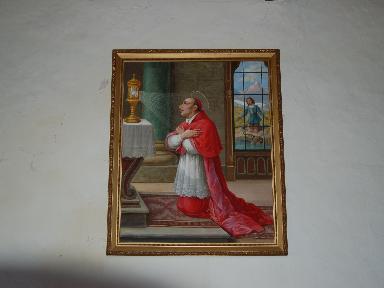 A l'intérieur, les décorations en stuc et les fresques datent de l'époque baroque, tandis que le fragment de la fresque à côté de la chapelle de Saint Charles avec le Jugement dernier date du XVIe siècle.