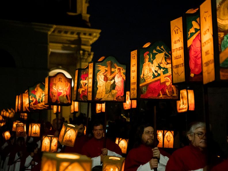 La Semaine Sainte à Mendrisio est marquée par un événement d’une extraordinaire intensité : les processions du Jeudi et du Vendredi saints, au cours desquelles sont représentées la Passion et la mort de Jésus-Christ. Il s’agit d’une tradition profondément enracinée, dont les premières traces écrites remontent au XVIIe siècle, mais qui trouve probablement ses origines encore plus loin dans le temps.
