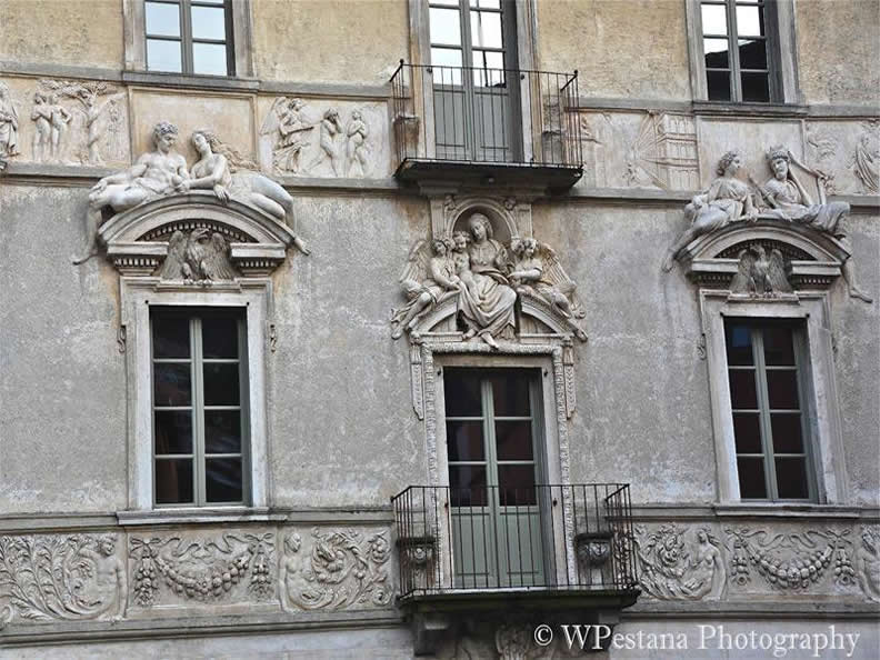 Les stucs prestigieux qui ornent la façade sont l’oeuvre de Jean Baptiste Serodine, fils de Christophe, propriétaire du bâtiment et frère du peintre Jean.