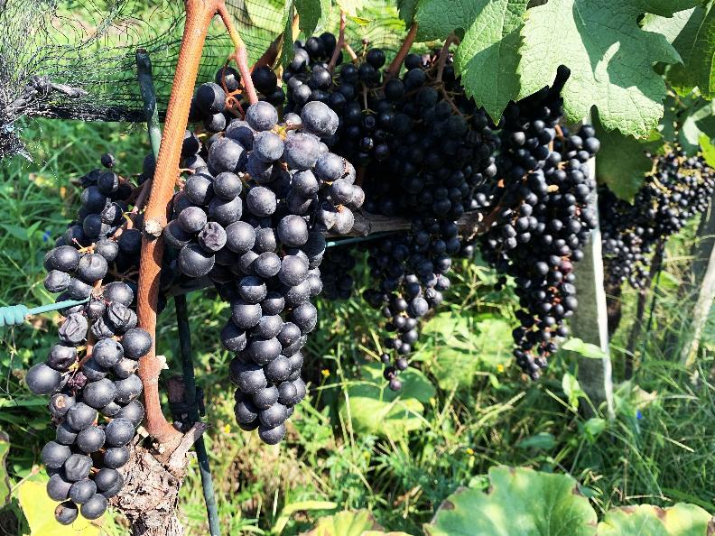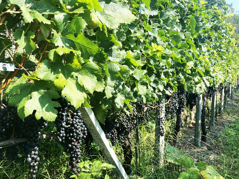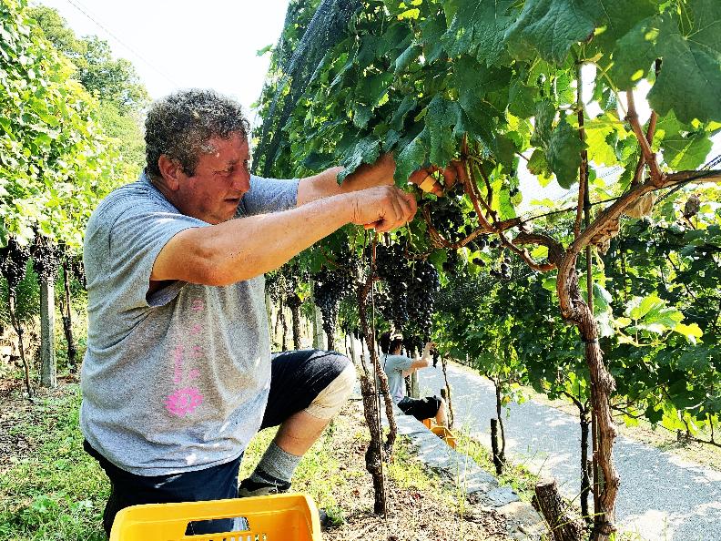 Sur les 30 parcelles qui représentent environ 6,5 hectares de terre dans la zone de collines à forte pente, nous essayons de cultiver des variétés qui s'adaptent bien aux conditions climatiques. Cependant, le soin de chaque vigne et de ses raisins nécessite des soins constants et essentiellement manuels car la configuration du paysage permet une mécanisation très légère.