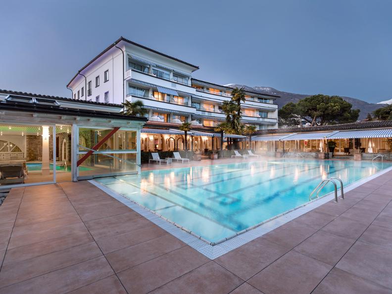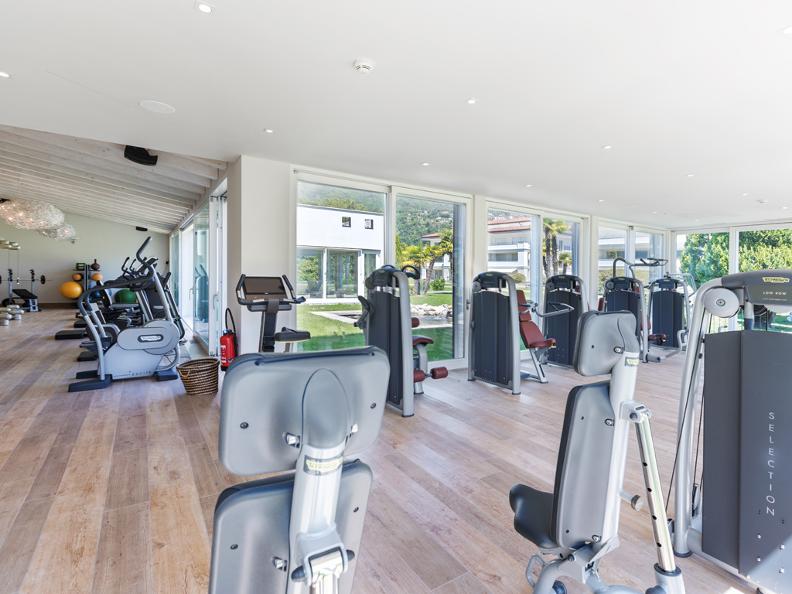 Le moderne centre Fitness & Wellness d’environ 600 m2 construit sur trois niveaux complète l'offre déjà existante atteignant un total d’env. 3000 m2 . Il offre sauna et sauna bio, sauna privé pour femmes , bain de vapeur, jacuzzi (3.5x2.5), une moderne salle de fitness de 150 m2 donnant directement sur le parc avec les équipements Technogym à l’avant-garde , deux zones relax dont une à l'extérieur sur la terrasse, des vestiaires et des douches confortables.