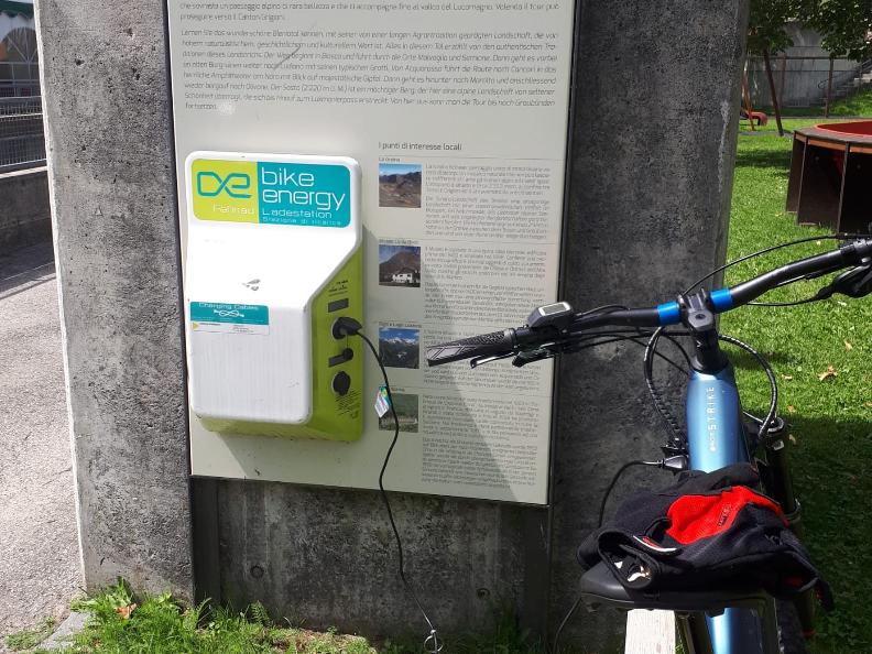 Chaque station de recharge présente sur les « parcours e-bike » permet de recharger rapidement jusqu’à 4 e-bikes simultanément. Cette recharge est gratuite et elle est possible dans n’importe quelle condition atmosphérique. Il est inutile d’utiliser son propre transformateur et chaque emplacement indique où demander (à proximité immédiate) les adaptateurs pour connecter n’importe quel type de batterie.