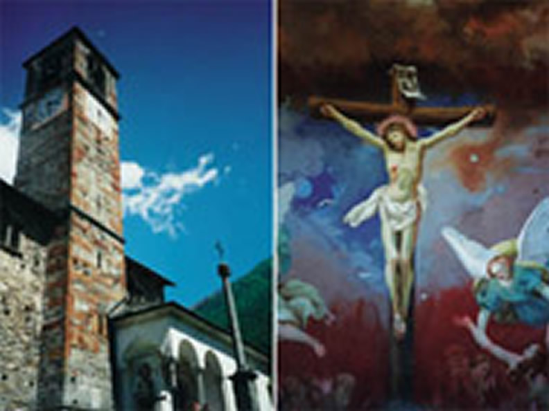 A côté de l'église, ossuaire et belles fresques de G. A. F. Orelli (Purgatoire, Crucifixion et Pietà ? 1753).