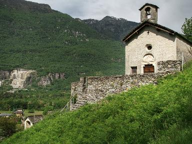 Depuis la route principale du bourg, sur un bref sentier, on arrive à une colline où se dresse l'église de S. Marta, d'origine romane, qui fut agrandie et dont l'orientation fut modifiée vers la fin du XVIIe s. L'édifice originel constitue l'atrium de l'église actuelle. Sur la façade, on peut voir des fragments d'une fresque représentant St Christophe. L'intérieur est à nef unique avec deux chapelles latérales et choeur séparé par une nef au niveau du maître-autel. La chapelle latérale droite est ornée de fresques de la seconde moitié du XVe s., réalisées par Cristoforo da Seregno. Dans la partie supérieure, on peut voir une Vierge sur le trône parmi des saints et, dans la partie inférieure, St Georges libérant la princesse du dragon et Ste Marthe. Les deux fresques de la contre façade sont l'oeuvre de Cristoforo da Seregno et représentent la Messe de St Grégoire avec Jésus et des symboles de la Passion. On peut même observer une inscription avec une promesse d'indulgence datée du 27 mai 1486. Plus bas, se trouvent d'autres représentations de saints, probablement de Nicolao da Seregno. Elles pourraient être les dernières oeuvres datées de ces deux artistes.