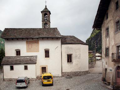 L'intérieur comprend une nef unique avec voûte à poutres de bois apparentes, un petit choeur précédé d'arcades basses décorées de stucs. Sur le mur sud, une fresque du XVIe s. représente les saints Lazare et Jean Baptiste. Le retable représente la Madone et les saints Maurice et Sébastien.