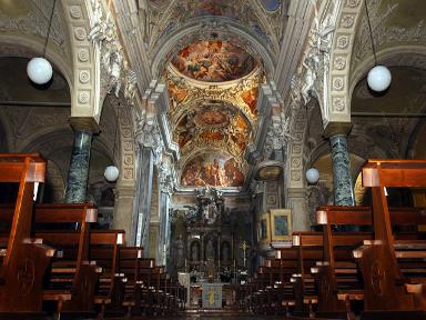 Située dans un grand village célèbre pour ses ateliers de fabrication de montres, l'église paroissiale de S. Stefano a été modifiée à maintes reprises (XVIIe - XIXe s.). Elle présente une intéressante façade du début du XVIIe s. A l'intérieur se trouvent le choeur surmonté d'une coupole, le maître-autel de style néoclassique et, sur la droite, un tabernacle en pierre de la période Renaissance, dans le style des Rodari (XVIe s.). Sur les voûtes de la nef se trouvent des fresque représentant la Gloire de St Stéphane. Les fresques de la coupole remontent à la première moitié du XVIIIe s. et ont probablement été réalisées par Luca Antonio Colomba. Dans la chapelle de la Vierge du Rosaire, les élégants stucs sont l'oeuvre de G. Antonio Colomba (1630), alors que le retable est d'un auteur inconnu (XVIIe s.). Dans la chapelle de S. Antonio, on peut voir des fresques en trompe-l'oeil de 1730, peintes par Luca Antonio Colomba, et, dans la chapelle des Mages, des fresques de Giovanni Battista Colomba et un retable représentant l'Adoration des Mages. A côté de l'église, ossuaire du XVIIIe s. avec stucs d'époque baroque.