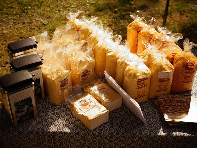 A l'étage supérieur, l'exposition didactique illustre l'histoire et les techniques de moutures des céréales, tandis qu'à l'étage inférieur se trouve le local avec les meules de pierre, actionnées par la roue à eau externe. Il est possible d'acheter la farine pour la polenta et la farina bona directement au moulin et au musée durant les heures d'ouverture.