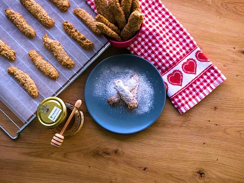 - Abaisser la pâte et la couper en bandes pour former les biscuits.