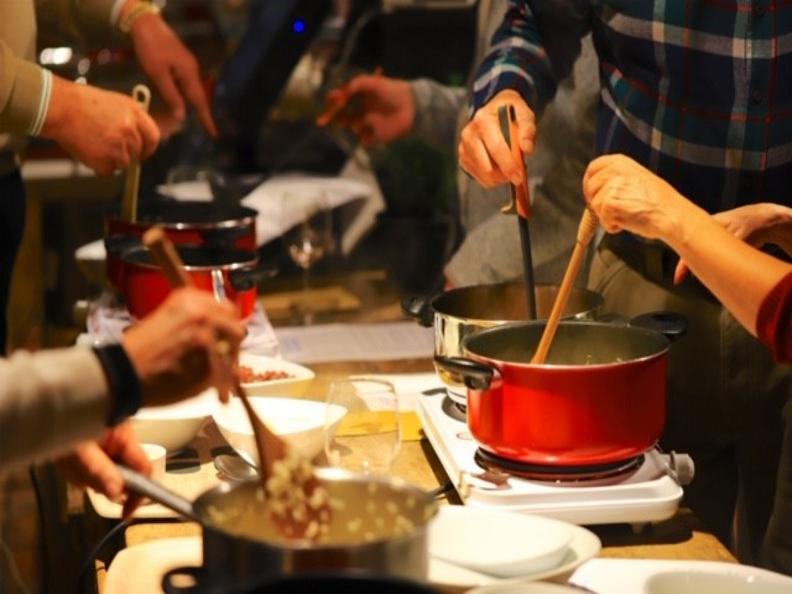 Un apéritif riche en spécialités locales vous attend ! Tout en sirotant le délicieux vin local, vous ferez l'expérience de cuisiner le risotto typique du Tessin sous la direction experte d'un chef. Vous découvrirez les secrets d'un bon risotto ! À table, chacun dégustera son risotto accompagné de viande et de légumes. Et pour finir, un dessert surprise typique !
