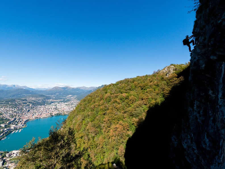 Depuis le sommet, il est possible de descendre à pied le long des sentiers qui mènent à Ciona/Carona/Melide/Morcote ou à Pazzallo et Paradiso; au cœur d’une nature intacte et régénératrice, différents sites panoramiques offrent aux promeneurs une vue magnifique. Les sportifs les plus aguerris et courageux peuvent, avec un équipement adéquat, s’exercer à l’escalade en parcourant l’exclusive “via ferrata”.