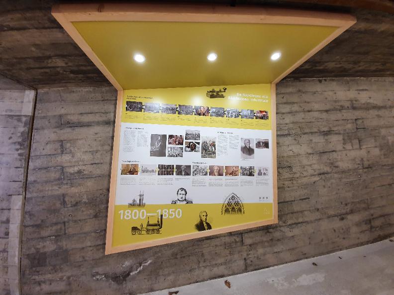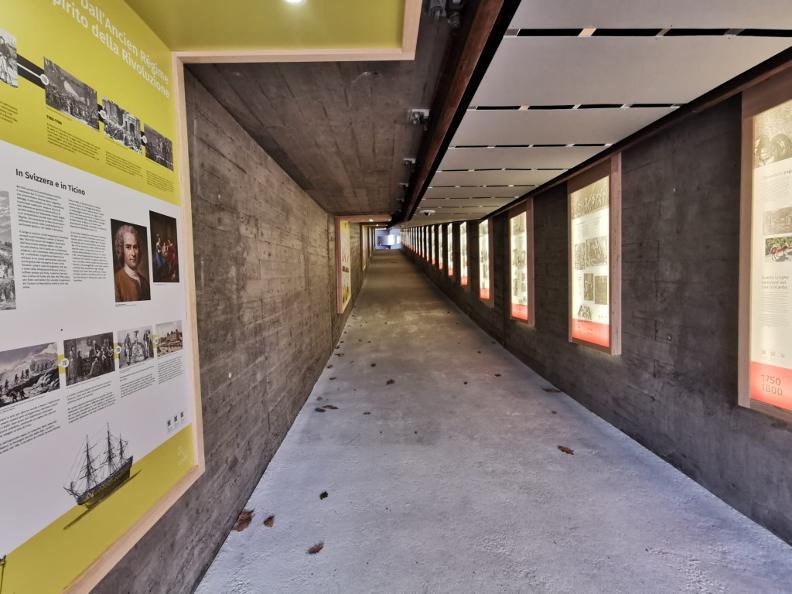 Sur le tronçon situé entre Robasacco et Cadenazzo, la Via del Ceneri traverse le passage souterrain de l'autoroute A2, qui a été transformé en un tunnel narratif capable de retracer, de manière didactique et vulgarisée, les évolutions qui ont marqué les moyens de transport et les voies de communication au cours des trois derniers siècles. On peut ainsi comprendre à quel point ces transformations ont modifié la société et affecté le territoire tessinois. Non loin de l'aire de repos de Robasacco, le long de l'autoroute A2, une aire de détente et de loisirs a vu le jour pour les voyageurs contemporains qui empruntent la Via del Ceneri.