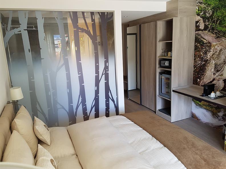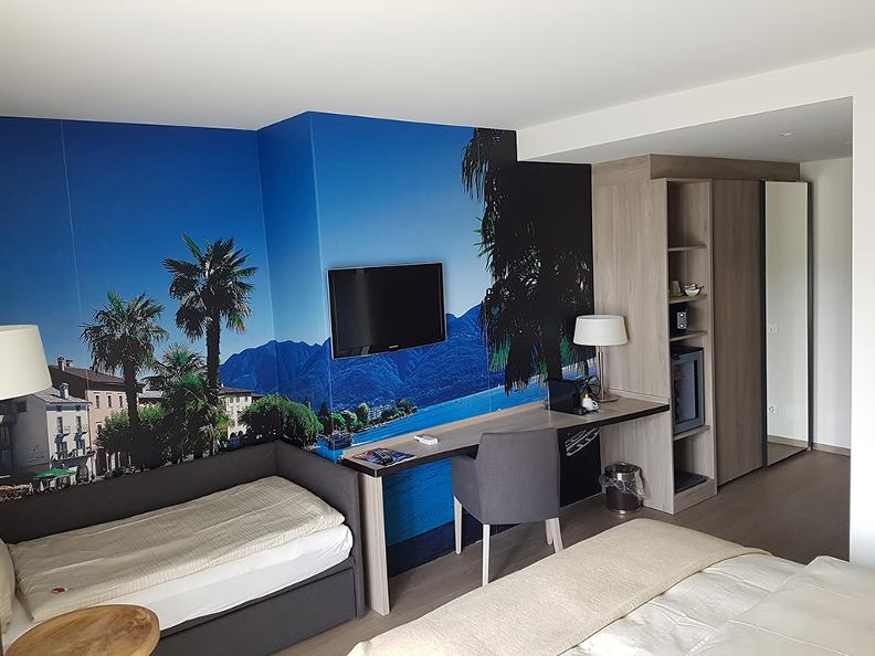Au fil des années, l’établissement a été rénové avec soin, en conservant un style chaleureux et personnel. Les chambres racontent le territoire à travers des estampes élégantes représentant les lieux emblématiques du Tessin – de la pittoresque Val Bavona au charmant train des Centovalli – tandis que les chambres premium sont décorées de fleurs délicates typiques de la région. Toutes disposent d'une terrasse ou d’un balcon avec vue sur le jardin, à l’exception des chambres economy, conçues pour celles et ceux qui recherchent une solution plus simple et économique.