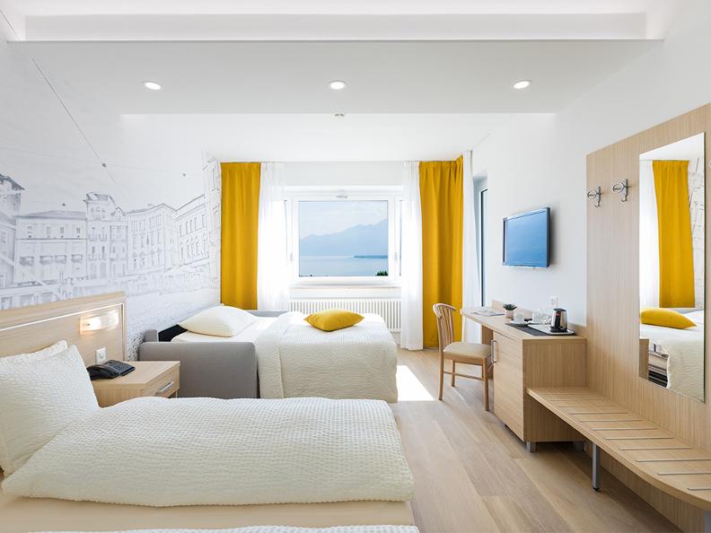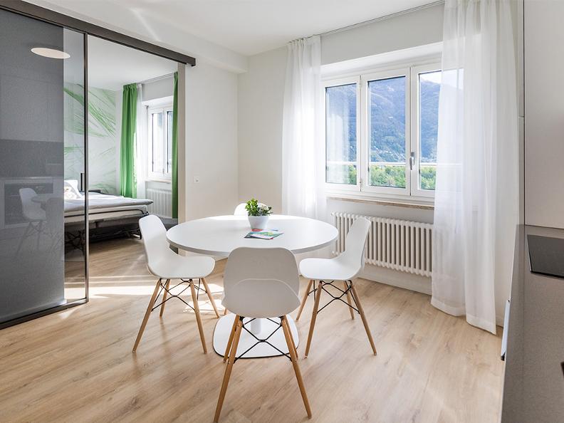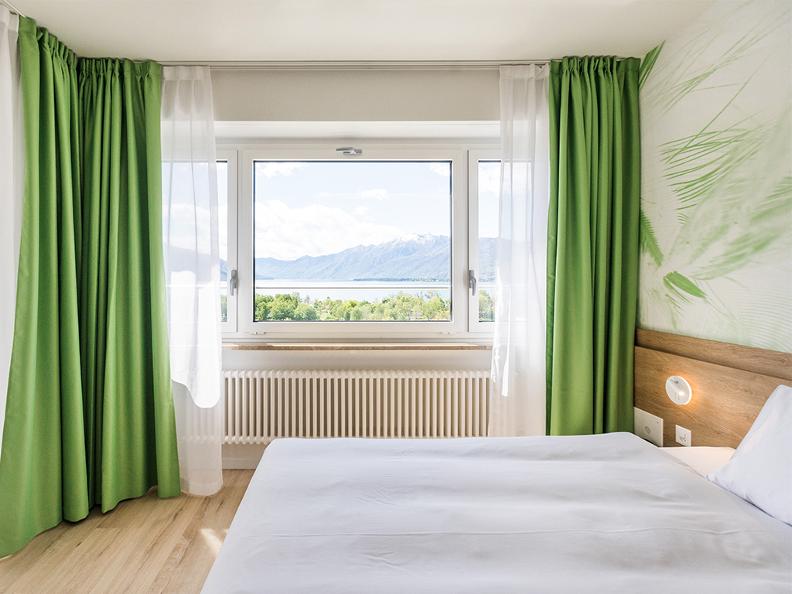 Les chambres spacieuses et lumineuses de la Casa Torre 2, situées aux 11e et 12e étages, disposent d'une salle de bain privée avec douche ou baignoire, d'un minibar, de la télévision par câble, d'un sèche-cheveux et d'un téléphone. Au 13e étage, la journée commence par un copieux petit-déjeuner buffet servi avec une vue incomparable sur le lac. Pour les séjours d’au moins trois nuits, des appartements de vacances spacieux, de 1½ à 3½ pièces, sont disponibles entre le 7e et le 10e étage.