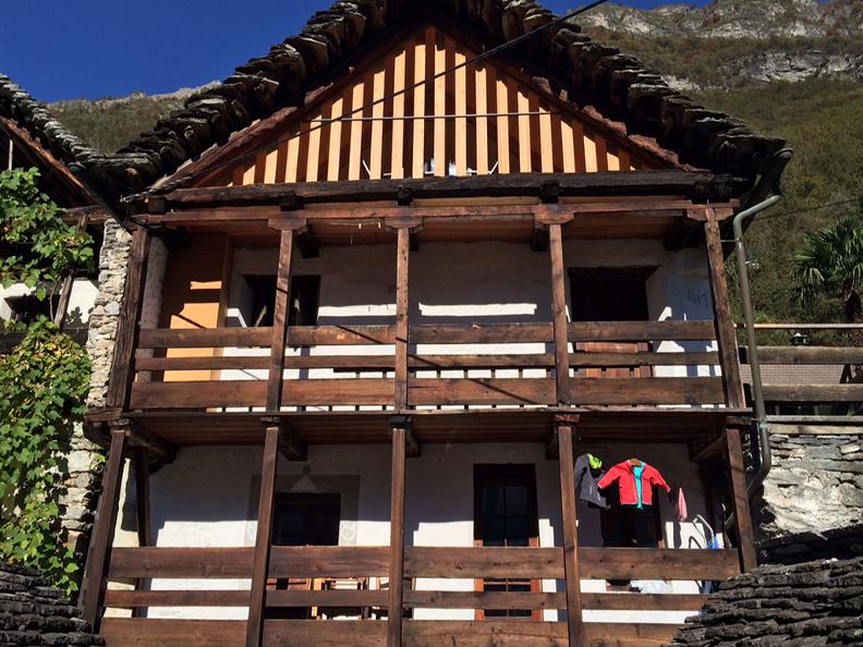 Rustique confortable dans la partie ancienne du village. Étage inférieure: cheminée, cuisine équipée, cuisinière vitrocéramique, four, frigo, buffet, table e chaises, canapé-lit, radio/CD. Salle de bain: douche, toilette, lavabo. Première étage, accessible par escalier extérieur: 3 lits, armoire, commode, table, chaises, toilette. Mansarde: 2 fauteuils, petite table, TV/Wi-Fi. Balcon à chaque étage. Cave: machine à laver, charrette. Pergola: table, bancs en granit. Petite terrasse, remise: chaises longues, grill, bois pour la cheminée. Rustique accessible de l’arrêt du bus en 7 min. du parking public en 3 min. Restaurant tout prêt. A Maggia: supermarché, médecin, pharmacie, banque.