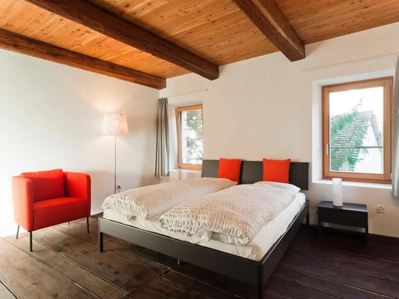 Le logement comprend un hall d'entrée, une cuisine avec salle à manger/séjour, une chambre double avec un lit de 180x200, une salle de bain avec douche et sèche-cheveux et une chambre à deux lits avec deux lits simples de 90x200.Balcon et petit espace extérieur. Séjour avec télévision (Bluewin TV) et Wi-Fi, cuisine avec lave-vaisselle, four Combi Steamer, Nespresso, four micro-ondes, grille-pain et bouilloire. Pendant le séjour des hôtes, nous serons présents régulièrement.