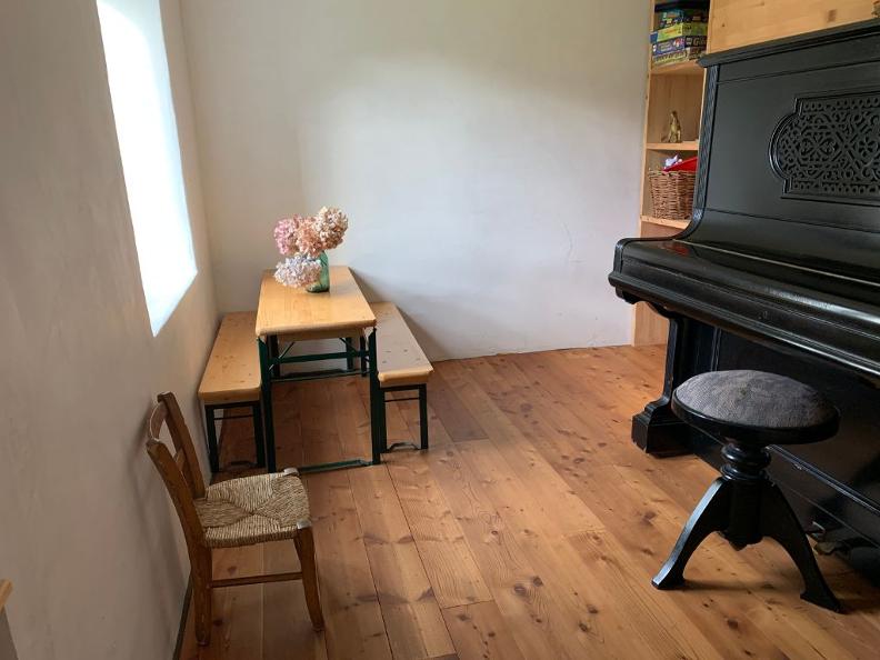 Cuisine entièrement équipée. Salle à manger avec cheminée, poêle à pellets et table à manger. Salon avec canapé et télévision par câble. Pièce avec piano droit. Premier étage avec 3 chambres : 2 chambres doubles (lit 160 cm) et une chambre avec 2 lits simples. Salle de bains avec baignoire sur pied et douche à l'italienne.